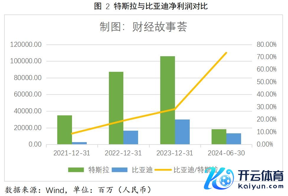时期回到2021年底,特斯拉每股价钱高潮到1200好意思元上方,市值达到万亿好意思元。2021年特斯拉终了商业收入3431亿,净利润351.8亿,而彼时比亚迪的营收2130亿,惟有特斯拉的62%,净利润才刚重大30亿,惟有特斯拉的十分之一不到。