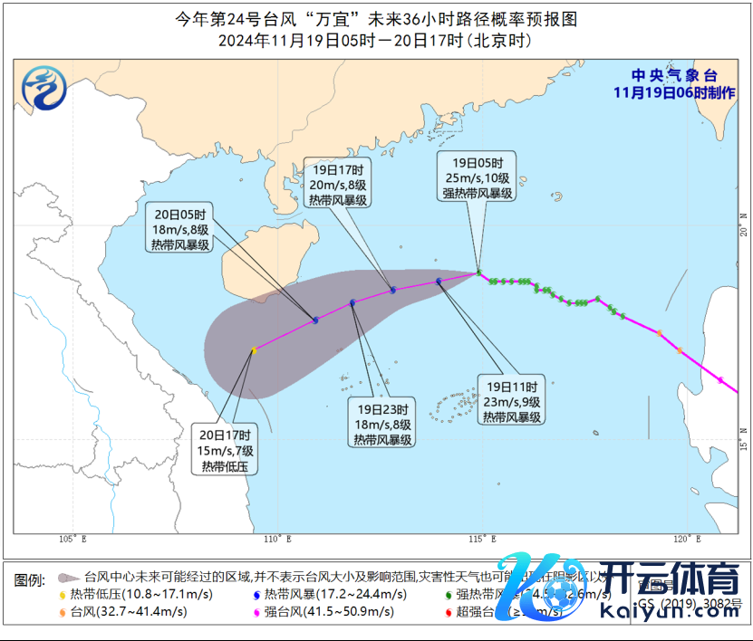 本年第24号台风“万宜”(强热带风暴级)的中心今天(19日)朝晨5点钟位于海南省三沙市(西沙永兴岛)东朔标的约355公里的南海东北部海面,即是北纬18.9度、东经114.9度,中心近邻最大风力10级(25米/秒),中心最低气压为985百帕,七级风圈半径180-280公里。