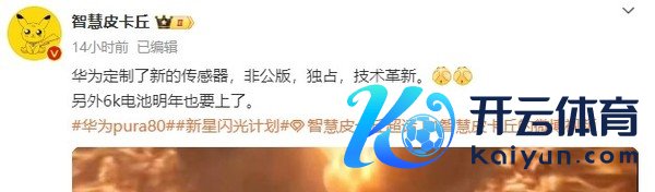 华为Pura 80系列曝光:定制国产传感器 6000mAh电板开yun体育网