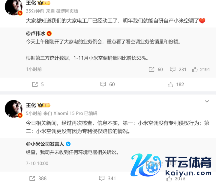 12月16号讯息,小米王化示意“本日联系新闻,历程再次核查,信息空虚。第一:小米空调莫得专利侵权看成;第二:小米莫得因为专利侵权补偿的情况。”