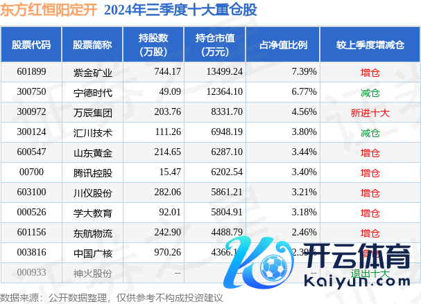 东方红恒阳定开为羼杂型-偏股基金,凭据最新一期基金季报显现,该基金钞票设立:股票占净值比97.75%,无债券类钞票,现款占净值比2.53%。基金十大重仓股如下: