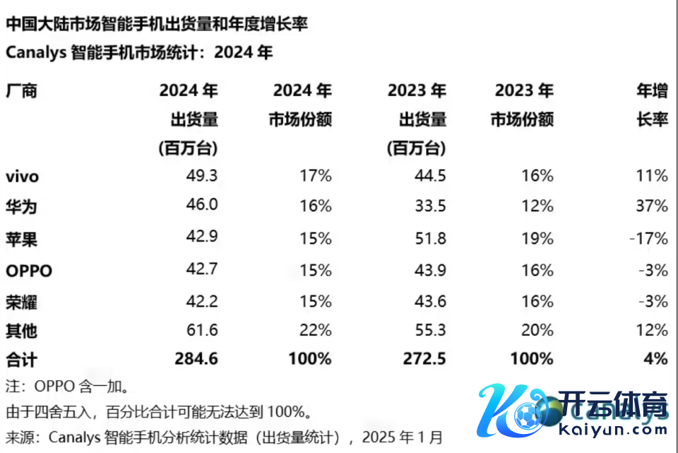 近日,市集造访机构Canalys发布了2024年中国大陆智高东谈主机市集的出货量数据体育游戏app平台,揭示了在这一要津年份中,各大厂商的市集发达与竞争形势。
