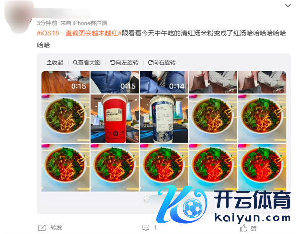 事情启事是有部分用户发现升级iOS18.2后,在相册内找到一张像片,一直重叠截图,截到一定数目,像片就会形成红,这一离谱Bug让东说念主像像片秒变\"\"。
