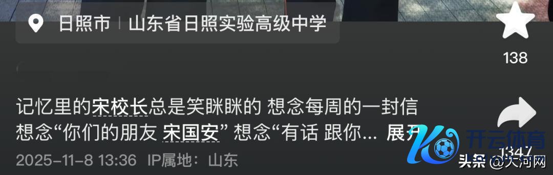 “你们的事,等于校长的头等大事,关乎你们的事,再小亦然大事。有事请找校长……”这段翰墨来自宋国安给高三学生们的一封信,这封信题为《你有话,请和咱们说……》,以“寰球隔断了”滥觞,题名为“你们的一又友宋国安”。费同学2022年从日如实验高档中学毕业,她告诉极目新闻记者,这封信写于2022年4月22日,距离高考不及两个月。她先容,这叫“每周一封信”,意旨兴趣是每周学生皆会收到这么的一封信。“每个东谈主皆会说,他是碰到的最佳的校长,即使不是最佳的,亦然之一。”费同学说。